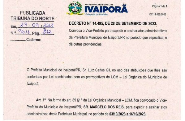 Aliás, após a nossa informação da suspensão dos direitos políticos do Prefeito, ele publicou um Decreto no. 14.495/23, no qual atribui ao vice-prefeito a obrigação de assinar e expedir todos os atos administrativos, porque se assim não ocorrer, podem ser declarados nulos.