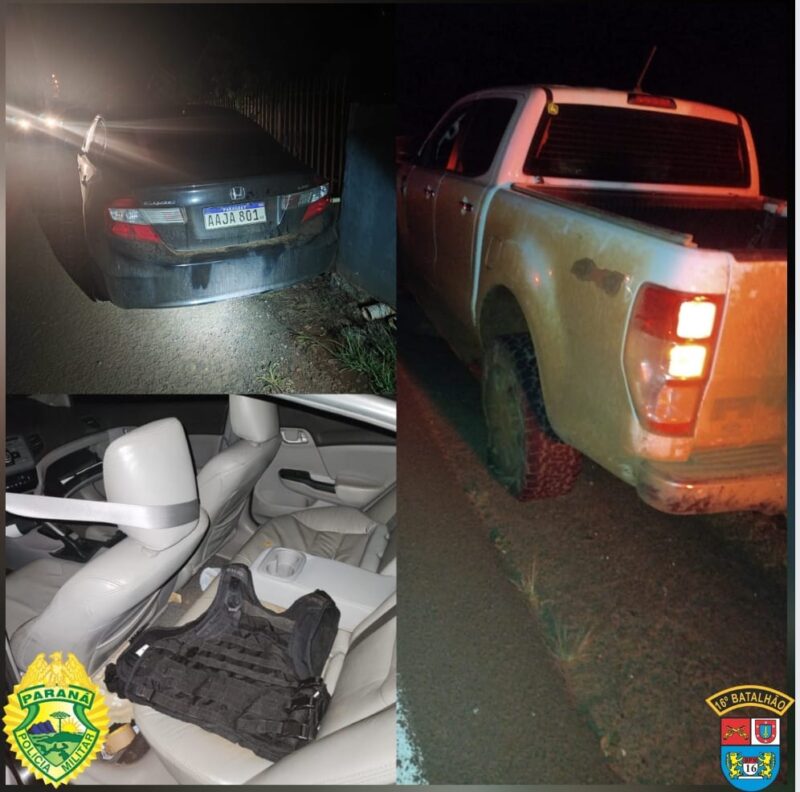 Diante dos fatos, as equipes logo após o veículo Hyundai I30 placas AWE0B09 parar na PRC-466, duas pessoas adentraram ao veículo, momento que iniciou acompanhamento tático, metros adiante pararam, onde um dos ocupantes correu sentido mata, enquanto os demais eram abordados.