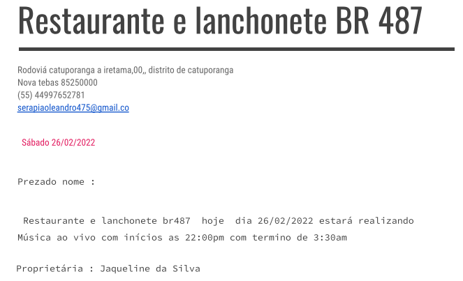 Lembrando que nesta mesma noite estava marcado e anunciado pelos organizadores para acontecer um baile show no Restaurante e Lanchonete PR-487 em Catuporanga, Distrito de Nova Tebas que fica as margens da Rodovia PR-487, quando no início da noite a nossa reportagem foi informada que o evento teria sido cancelado após o prefeito municipal legar para os proprietários do estabelecimento, falando que não era para realizar o evento devido ao Decreto Municipal relacionado ao Covid-19.