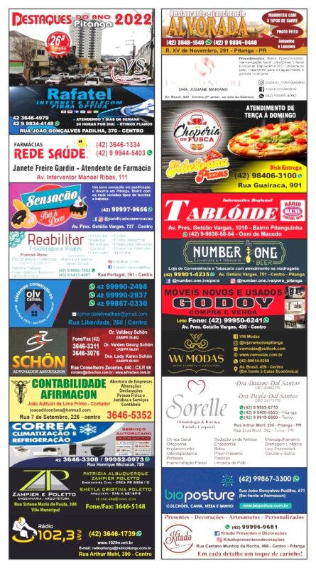 juntamente com o Restaurante e Lanchonete Alvorada; OLV Calhas; Rafael Internet; Farmácias Rede Saúde; Sensação Pães e Doces; Reabilitar; Drª Josiane Mariano; Atleticana Pizza e Choperia do Fusca; Number One Beer Conveniência; Schon Advogados; Contabilidade Afirmacon; Correa Climatização e Refrigeração; ZP Acabamentos; Rádio Pitanga; Móveis Godoy; Sorelle Odontologia e Estética; Bioposture Colchões, Cama, Mesa e Banho; Kitudo Presentes; VW Modas; e Q Mimo Moda Infantil.