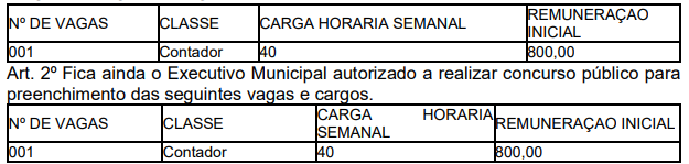 No âmbito municipal, no entanto, a situação apresenta outros contornos[6], haja vista que, pelo menos, desde outubro de 2003, havia previsão legal do cargo de contador, conforme a Lei Municipal n. 23/2003: EMENTA: Cria cargos, no quadro de pessoal da Prefeitura Municipal de Laranjal, autoriza fazer concurso e dá outras providências. […] Art. 1º Ficam criados, no Quadro de Pessoal da Prefeitura Municipal de Laranjal, os seguintes cargos de provimento efetivo com as respectivas remunerações: