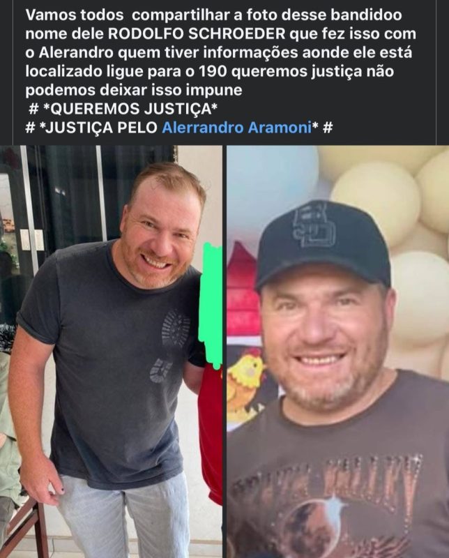 Rodolfo Schroeder e Alerrandro Aramoni de Lemos não se conheciam antes daquela noite. Os dois estavam em um ambiente inadequado, ingerindo bebida alcoólica até as 06h da manhã, o que, por si só, já contribuiu para o descontrole da situação. Em determinado momento, os dois se envolveram em uma briga, que escalou rapidamente. Importante ressaltar que Rodolfo não foi o único a agredir — ele também foi atacado inicialmente com uma banqueteada e, em seguida, sofreu diversos socos e pontapés. A luta foi tão intensa que ambos chegaram a cair no chão.