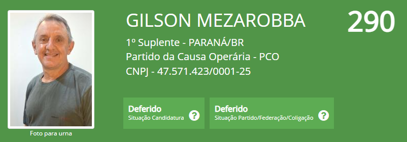 E ainda o Gilson Mezarobba que na eleição passada concorreu ao senado e agora foi nomeado como 1º suplente de senador pelo PCO.