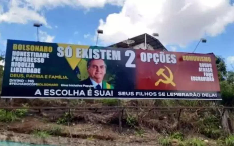 Após um outdoor em apoio ao presidente Jair Bolsonaro (PL) ser instalado na cidade de Divino, em Minas Gerais, o juiz eleitoral Marílio Cardoso Neves ordenou a retirada do prazo de 48h da placa.