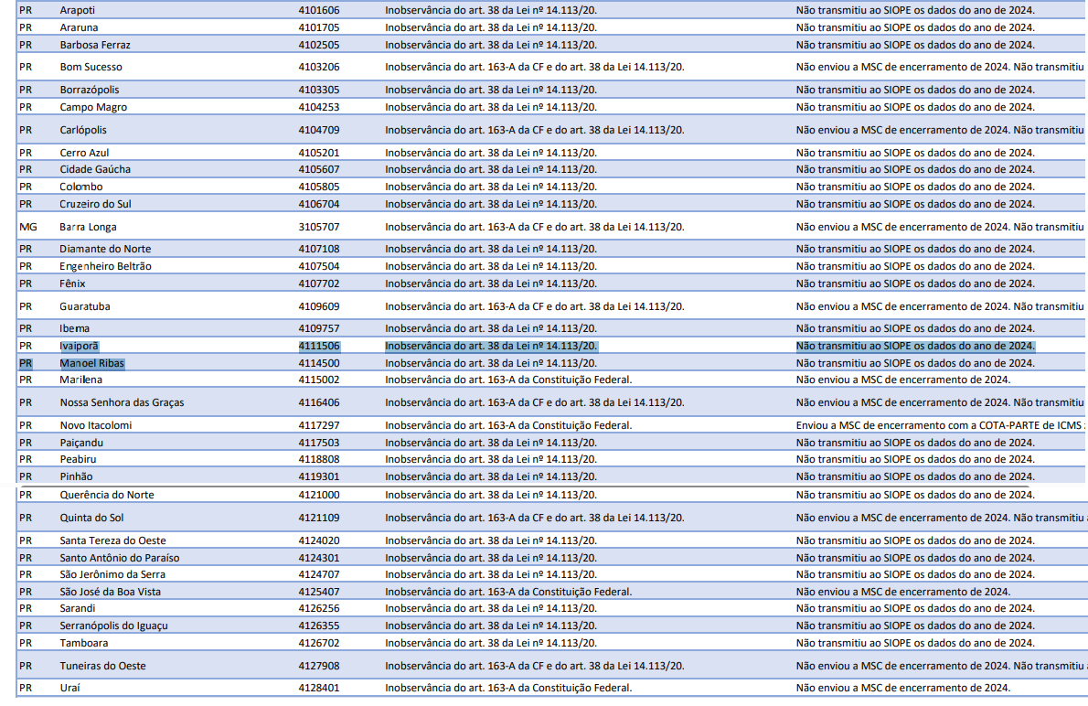 No TCE-PR, esse acompanhamento está sendo feito pela Coordenadoria de Atendimento ao Jurisdicionado e de Controle Social (CACS). “Apesar da redução verificada, é essencial que os municípios ainda pendentes adotem providências imediatas para garantir o acesso aos recursos federais, fundamentais para o financiamento da educação pública local”, alerta o coordenador da CACS, Luiz Henrique Xavier.