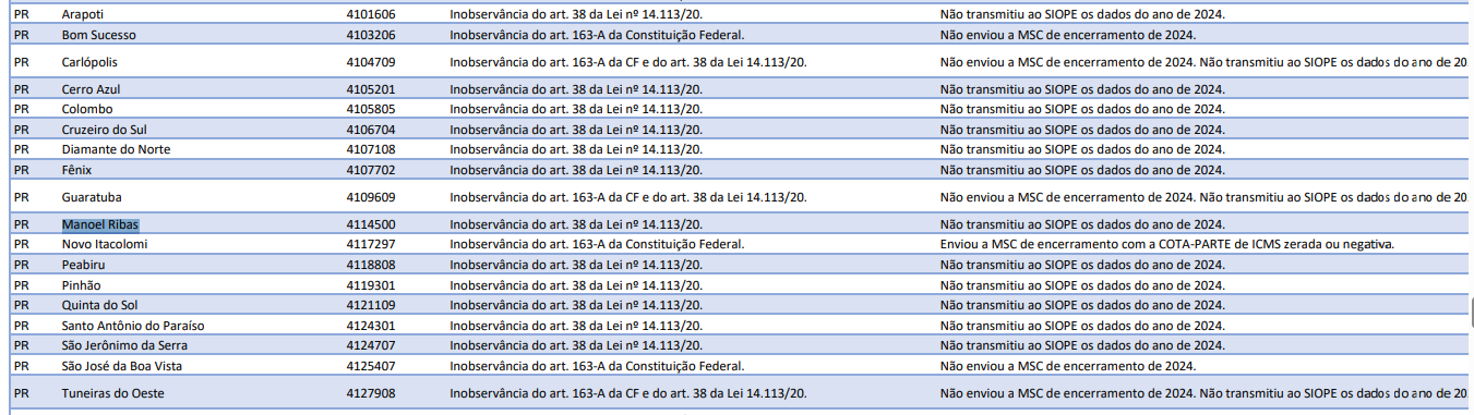 No TCE-PR, esse acompanhamento está sendo feito pela Coordenadoria de Atendimento ao Jurisdicionado e de Controle Social (CACS). “Apesar da redução verificada, é essencial que os municípios ainda pendentes adotem providências imediatas para garantir o acesso aos recursos federais, fundamentais para o financiamento da educação pública local”, alerta o auditor de controle externo Luiz Henrique Xavier, coordenador da CACS.