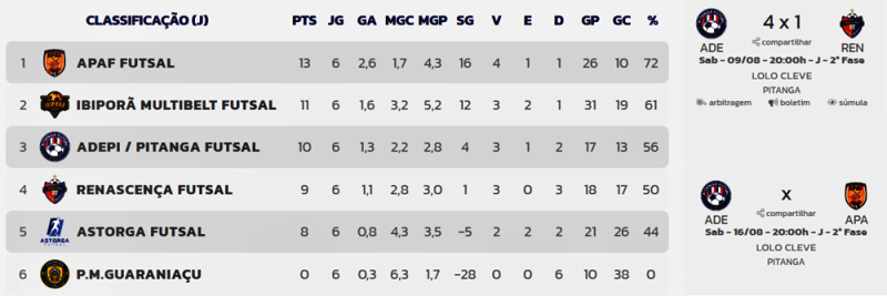 Com esse bom resultado, Pitanga assumiu a 3ª colocação no Grupo, com 10 pontos, e se aproxima do Ibiporã que tem 11, e do 1º colocado que é o seu próximo adversário que tem 13 pontos. Uma vitória do Pitanga contra o APAF, poderá assumir a primeira colocação no grupo.