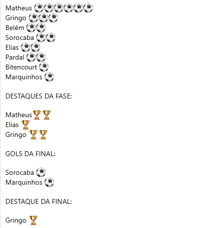 No total foram (5) jogos e (5) vitórias nesta fase, com 19 gols marcados e apenas (5) gols sofridos na competição.