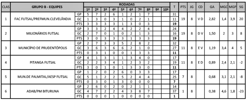 Lembrando que o Milionários é agora o 2º colocado da chave com 19 pontos ganhos, empatado com o líder da chave, o Clevelândia que também tem 19 pontos.