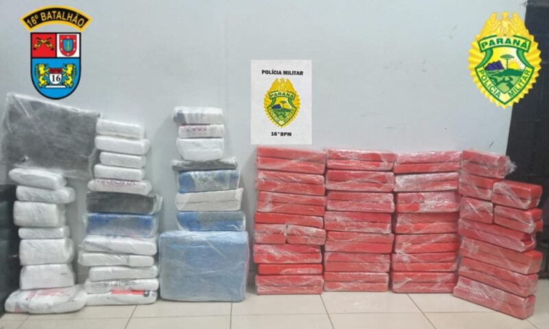 PM apreende na região de Guarapuava, mais de 91 quilos de maconha e um veículo com três pessoas que vinham de Foz do Iguaçu