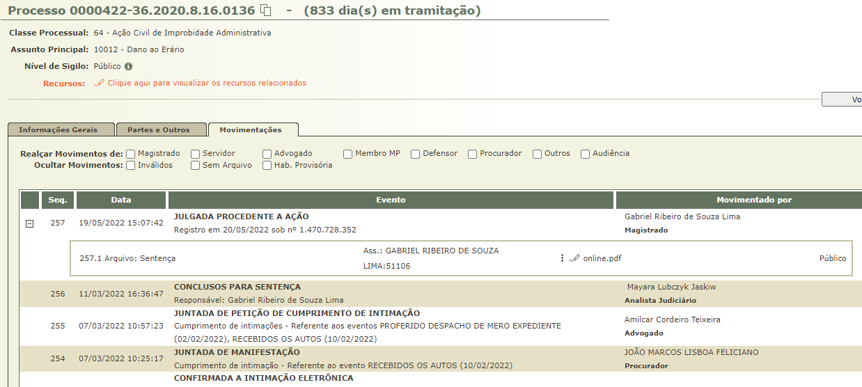 Documento que tramita no Projudi a 833 dias