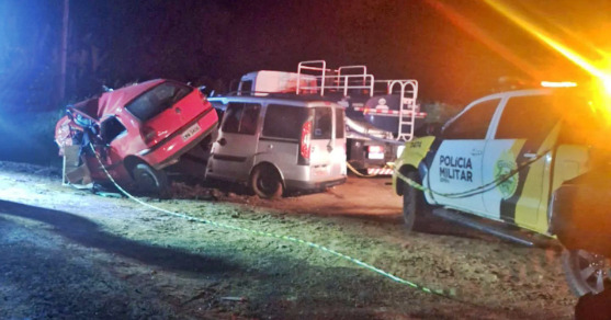 O acidente envolveu três veículos, um Gol e um Tracker que colidiram inicialmente, vindo o Gol a atingir um Fiat Doblô que estava parado às margens da rodovia.