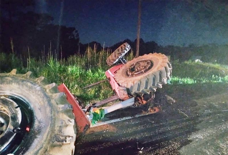 Foi então acionado o apoio do SAMU e no local foi constatado que o acidente envolveu um Trator com dois ocupantes, e uma Caminhonete Toyota Hilux com um ocupante.